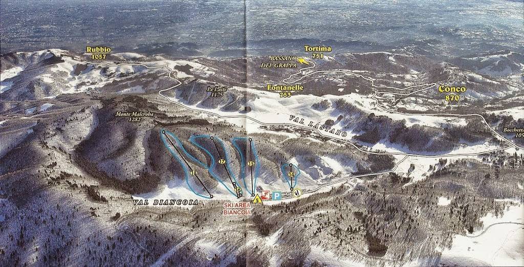 Biancoia (0,1 km), Conco (7 km), Lastaro (1,8 km), Galgi (1,7 km) Orte am Skigebiet