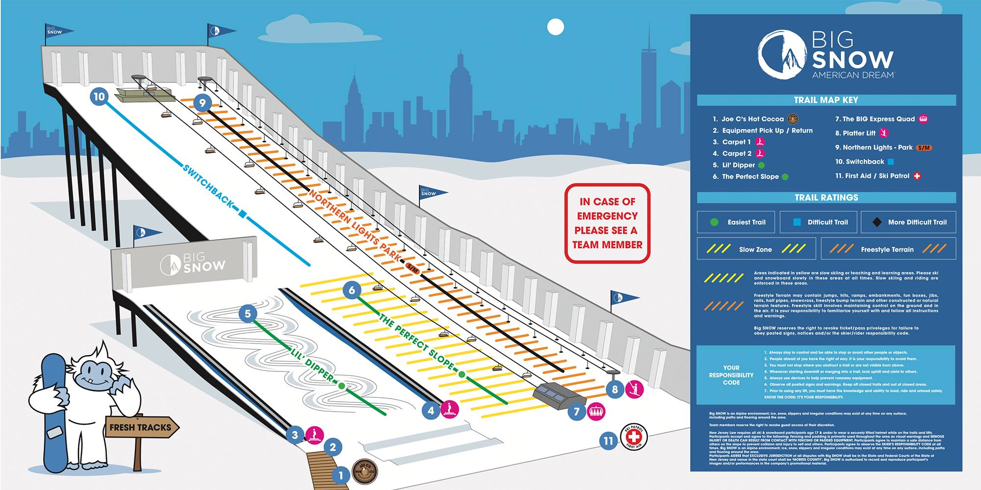 Die Skihalle Big Snow American Dream bietet einen übersichtlichen Pistenplan mit allen Pisten, Anlagen und weiteren Informationen.
