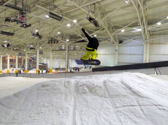 Die Skihalle Big Snow American Dream bietet einen schönen Snowpark unterhalb der Sesselbahn.