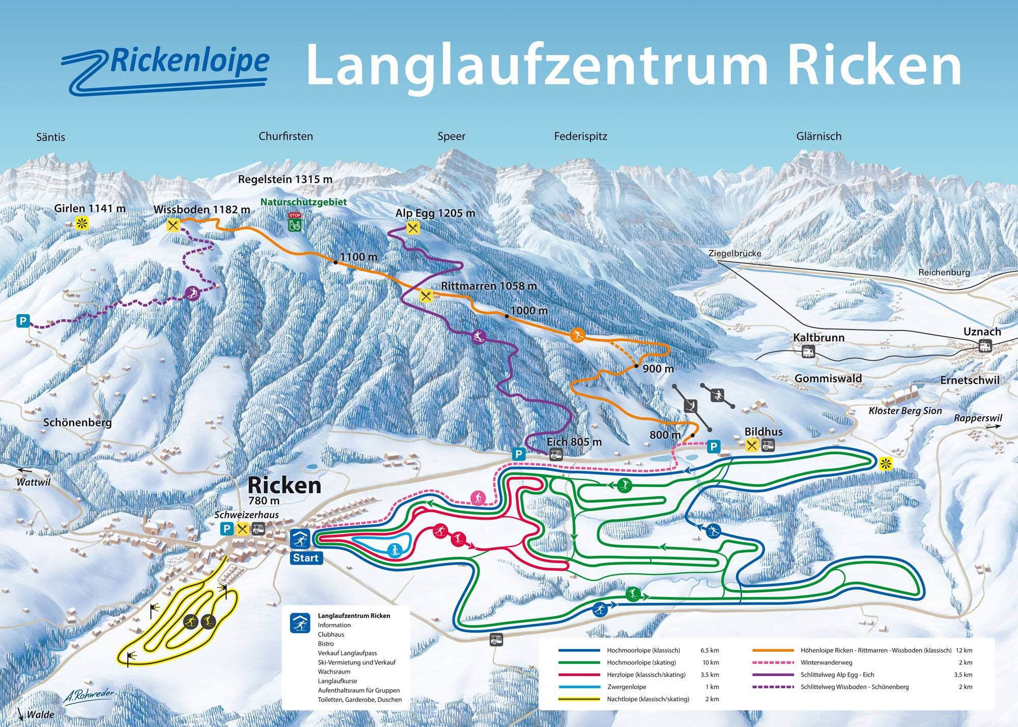 Ricken (1,7 km), Gommiswald (2,8 km) Orte am Skigebiet