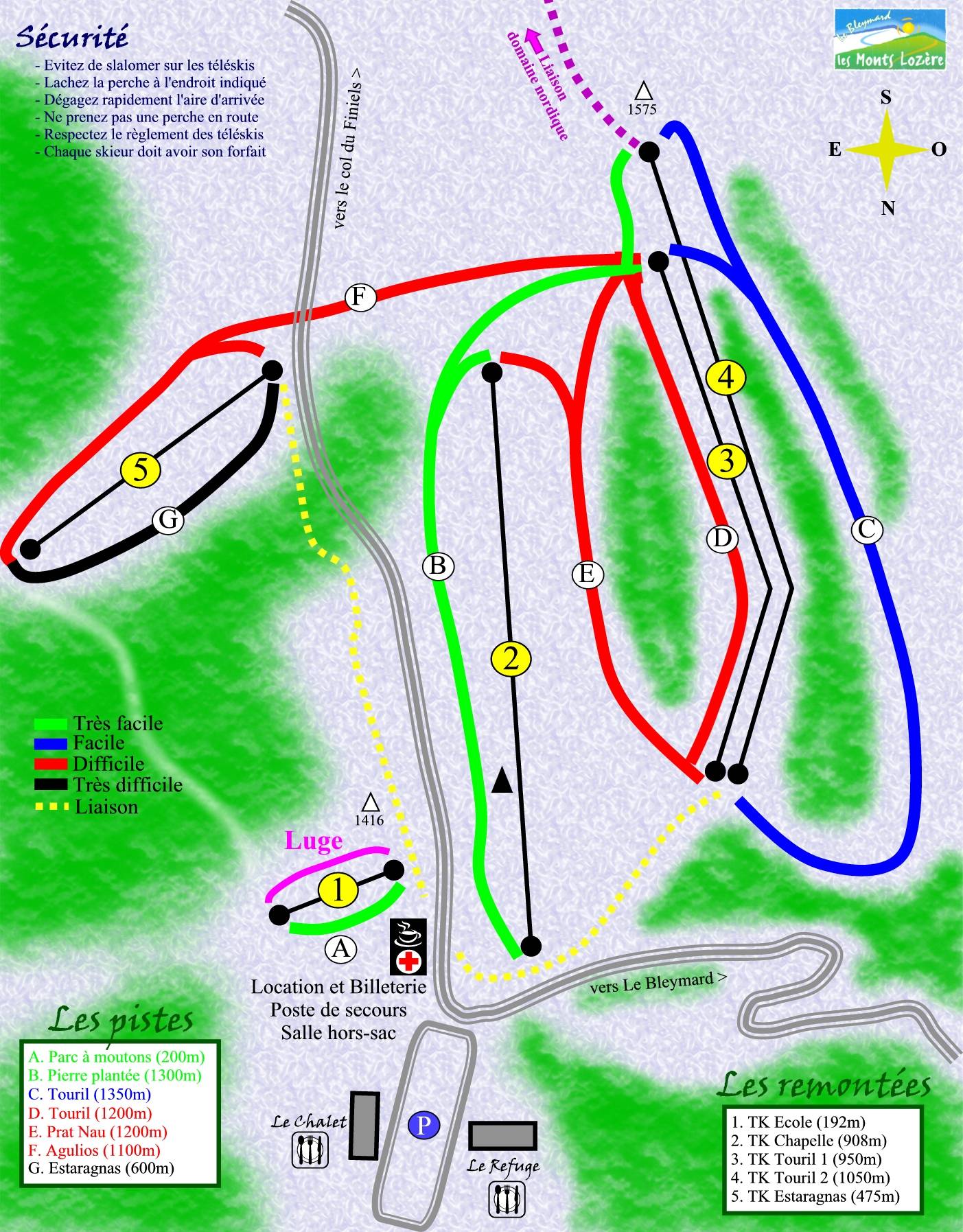 Pistenplan Bleymard – Mont Lozère Saison 2024/2025