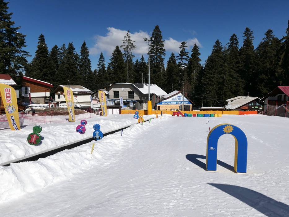 In dem abgegrenzten Areal können Kinder am Zauberteppich und beim Skikarussel ideal üben. Eine Skischule betreut. Das Kinderland liegt in der Nähe des Hotels Rila.
