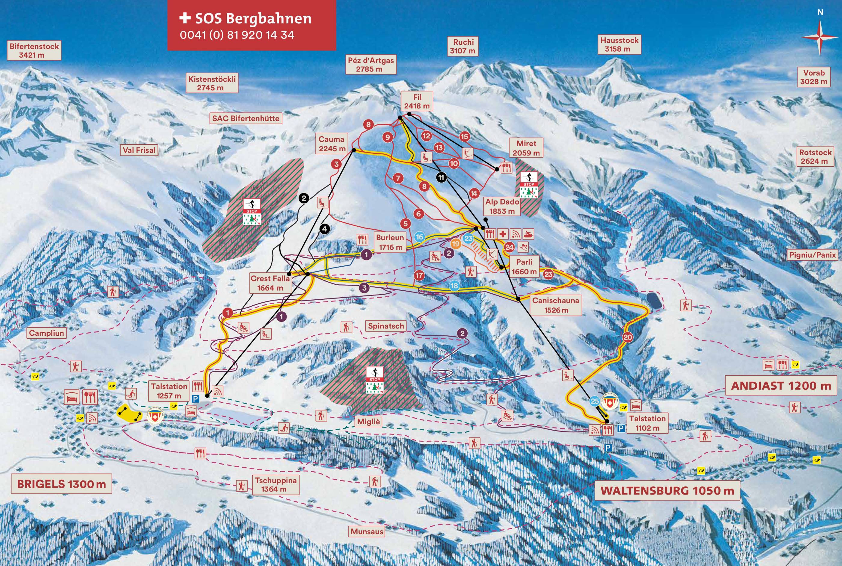 Pistenplan Brigels/Waltensburg/Andiast Saison 2025/2026