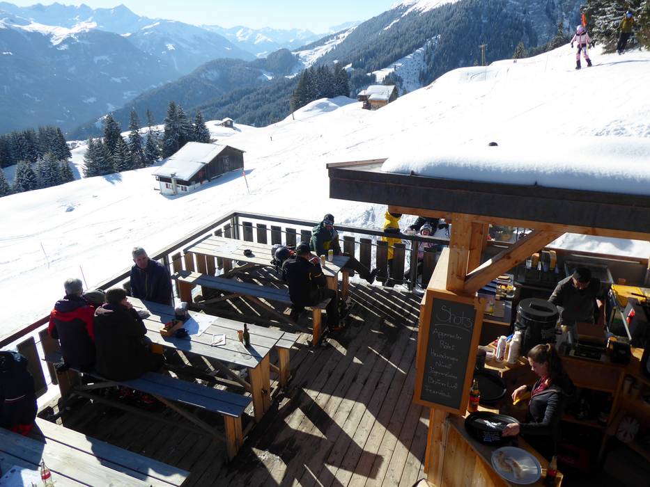 Die Schneebar Miret bietet gemütliche Hüttenstimmung, heiße Drinks und qualitativ hochwertige Speisen. Der Blick von der Hütte über die Bergwelt ist atemberaubend.
