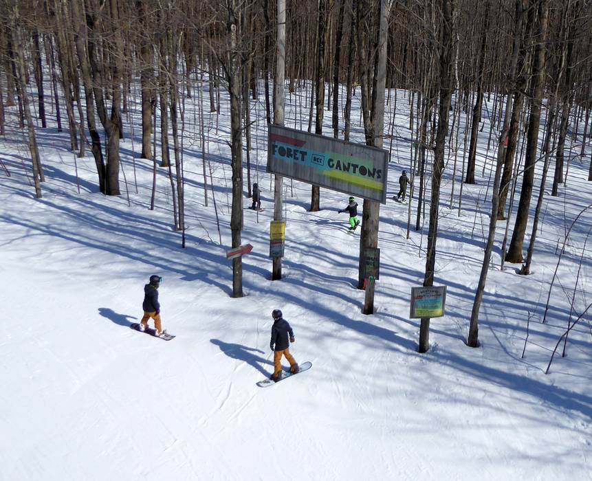 Der Grizzly's Trail befindet sich an der Piste Calgary und ist eine Waldabfahrt mit lustigen Figuren durch den Forêt des Cantons. Hier können die Kleinen auch sehr gut das Fahren in den ausgeholzten Wäldern üben.