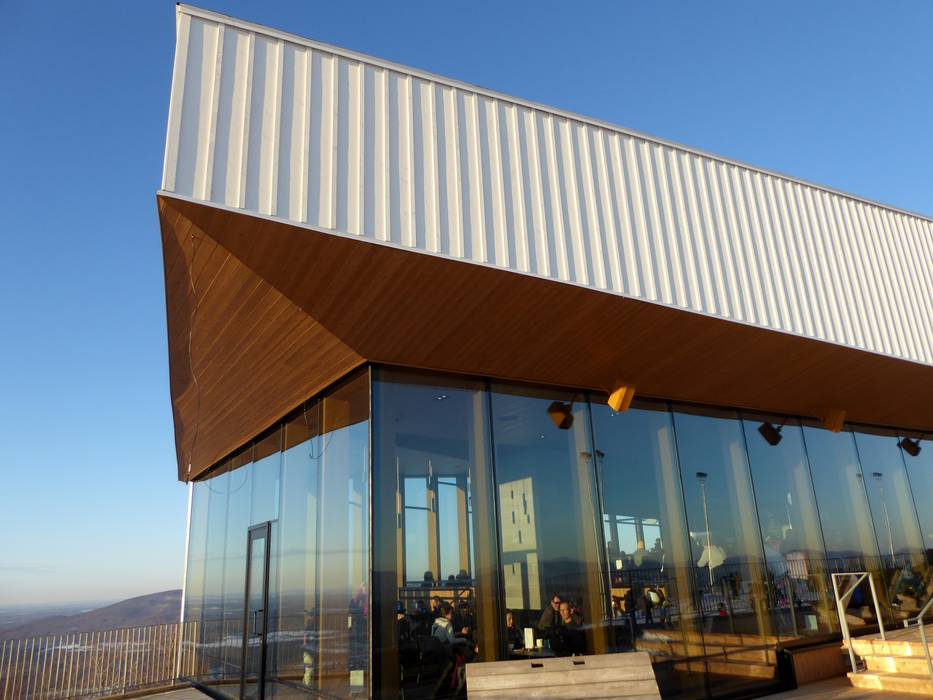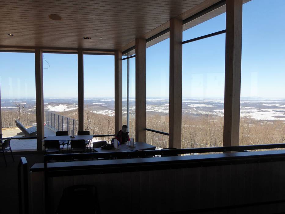 Direkt am Gipfel befindet sich das im Dezember 2019 komplett neu eröffnete Chalet du Sommet. Es gibt hier mehrere kulinarische Einrichtungen, wie das Le Daffy, das Bistro L'Escale und Le Comptoir. Hier kann man zwischen frischen Backwaren, Sandwiches, Flammkuchen, Quiches und Pasta wählen. Highlight ist natürlich der Ausblick auf die Monteregians und die Appalachen. Den Sonnenuntergang sollte man sich hier oben nicht entgehen lassen.