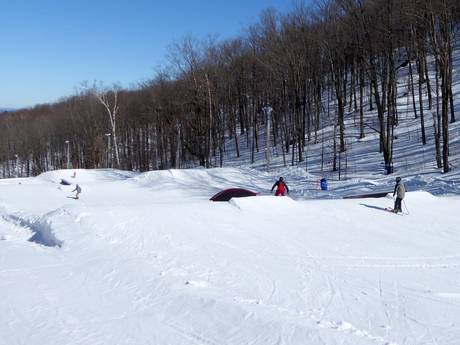Im Skigebiet Bromont sind unter dem Namen "SnowPrk Bromont" mehrere Snowparks verteilt.
