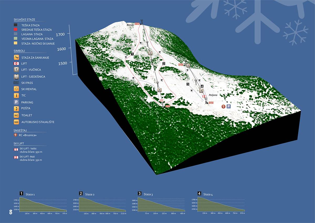Pistenplan vom Skigebiet Brusnica – Fojnica