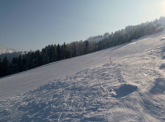 Für die Könner stehen zwei schwere Abfahrten und eine Skiroute zur Verfügung. Es gibt immer wieder die Möglichkeit einen Abstecher in den Tiefschnee zu machen.