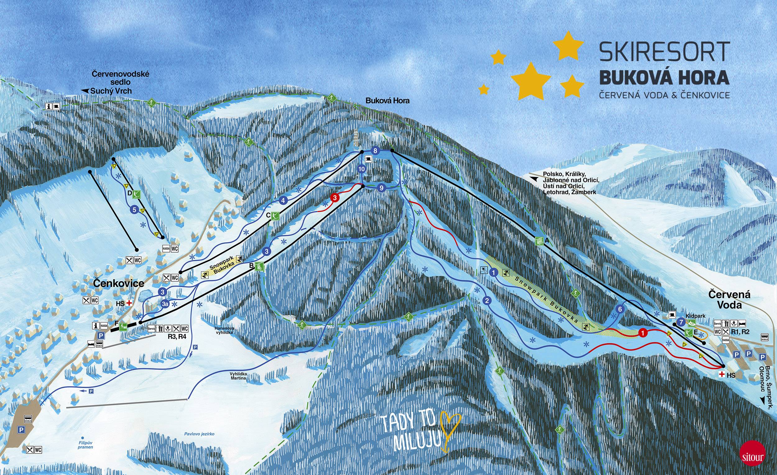 Pistenplan Buková hora – Čenkovice/​Červená Voda