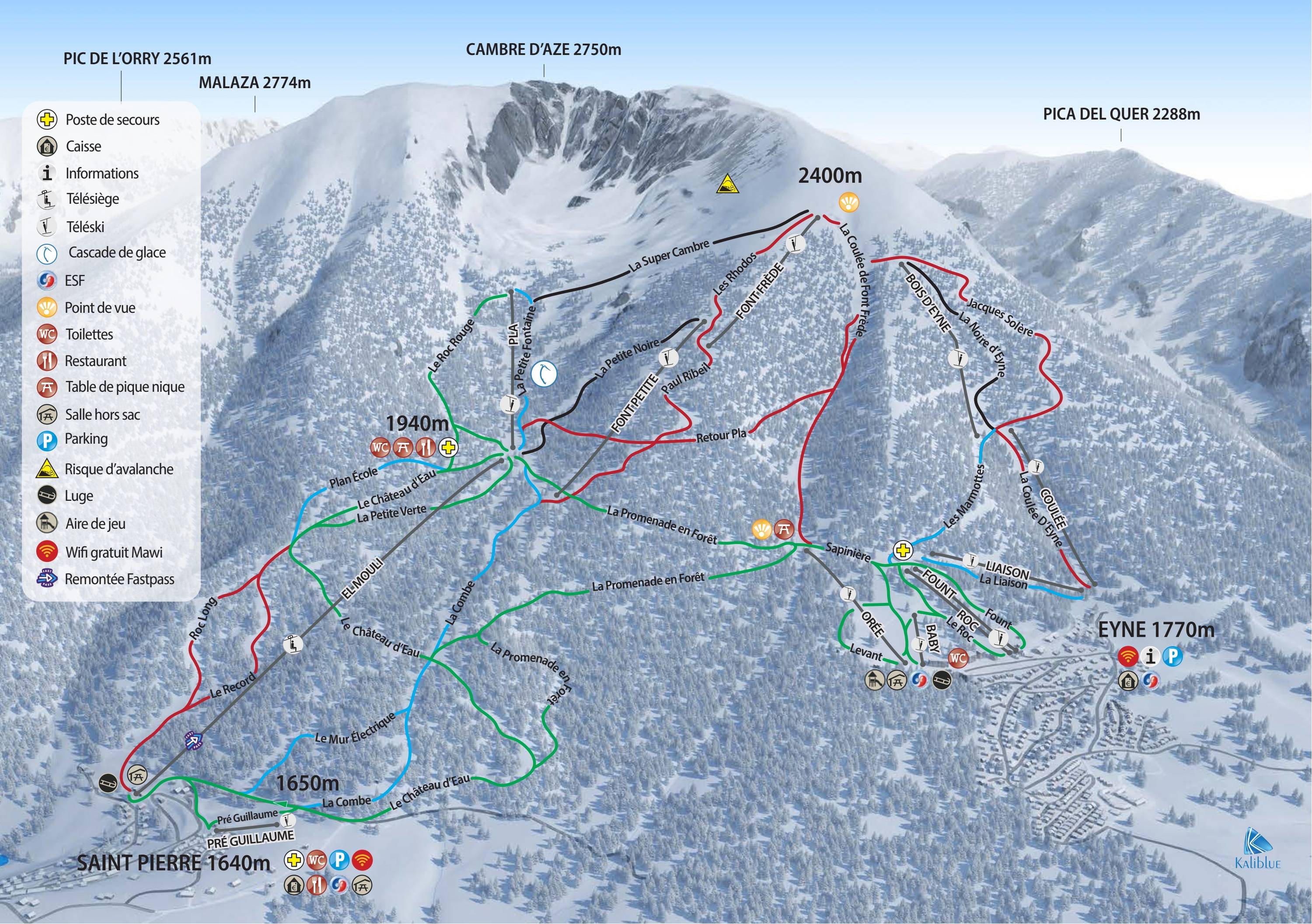 Pistenplan Cambre d'Aze – Eyne/Saint-Pierre-dels-Forcats Saison 2024/2025