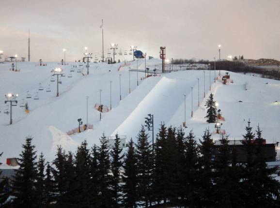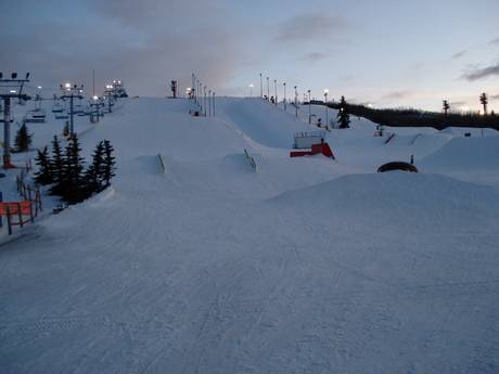 Fast der gesamte "Ski Hill" ist mit Snowparks und einer großen Halfpipe bestückt. Ein Paradies für die Freestyler.
