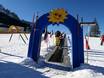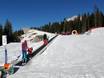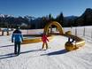 Das schöne Kinderland der Skischule Vigo die Fassa liegt direkt auf dem Karerpass. Mit lustigen Figuren und Förderband lernt es sich schnell.