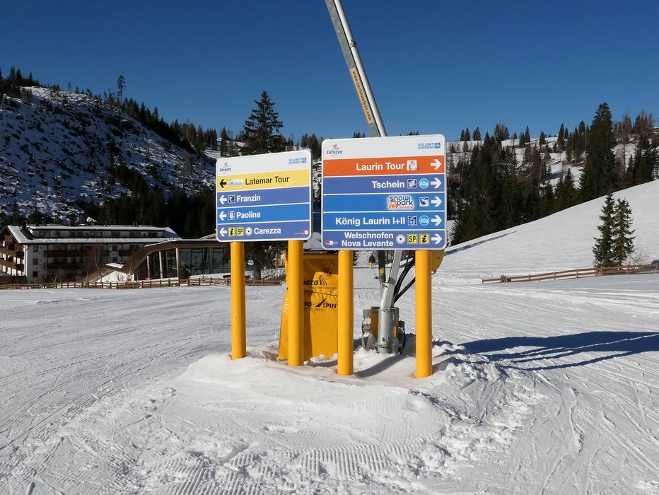 Orientierung (Pistenplan, Informationstafeln, Ausschilderung) und Sicherheit im Skigebiet Carezza