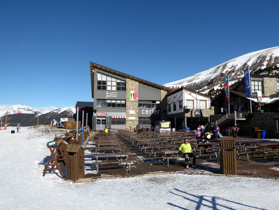 An den wichtigen Punkten Cota 2000 und Ampriu 1900 findet man gute Restaurants und Sonnenterrassen. Weitere Einkehrmöglichkeiten im Skigebiet Cerler ergänzen das Angebot. Leider gibt es auf den Gipfeln keine Hütten oder Sonnenterrassen.