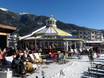 Wer chilliges Après-Ski mag, ist hier genau richtig. Der Lounge-Bereich bietet einen perfekten Platz zum Entspannen und Sonnentanken. In der Schirmbar kann man den Tag auch ausklingen lassen.