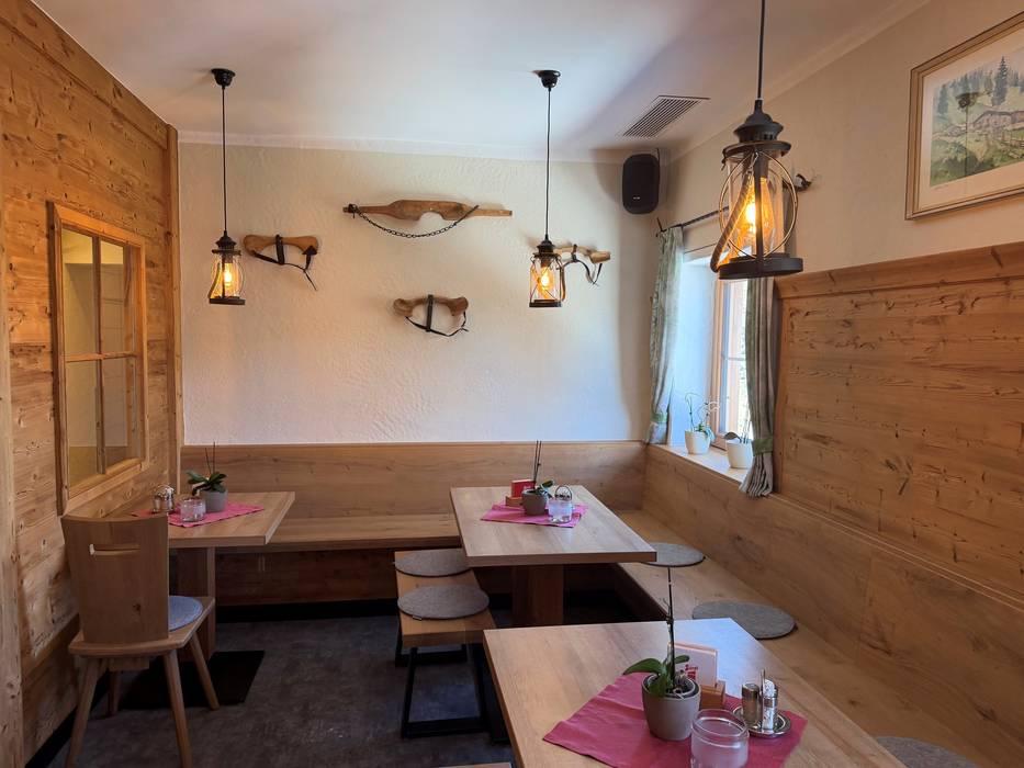 Die Seealm gehört zum Sporthotel Achensee. Die gemütliche Alm mit Kaminfeuer bietet frisch zubereitete Gerichte aus regionalen Zutaten mit Bedienung.