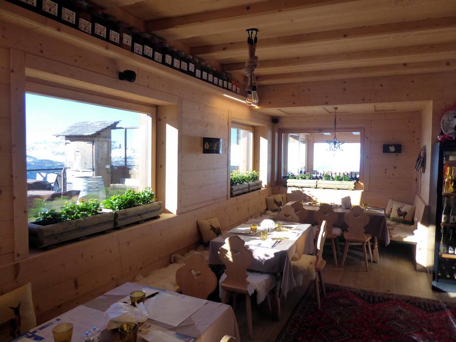 Die Hütte bietet typische und regionale Gerichte von sehr hoher Qualität. Ein Hochgebirgs-Weinkeller mit erlesenen Weinen rundet das Angebot ab. Von der Sonnenterrasse hat man einen herrlichen Blick auf die Dolomiten.