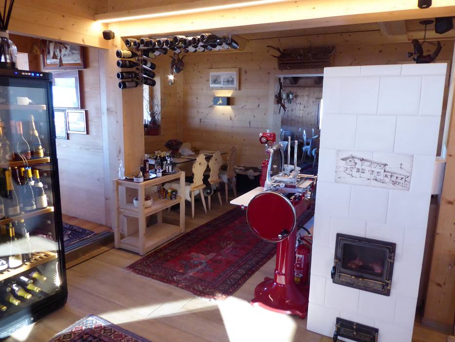 Am Start der Olympiapiste bietet die Hütte typische regionale Spezialitäten und eine große Sonnenterrasse. Der herrliche Blick auf die Dolomiten ist inklusive.