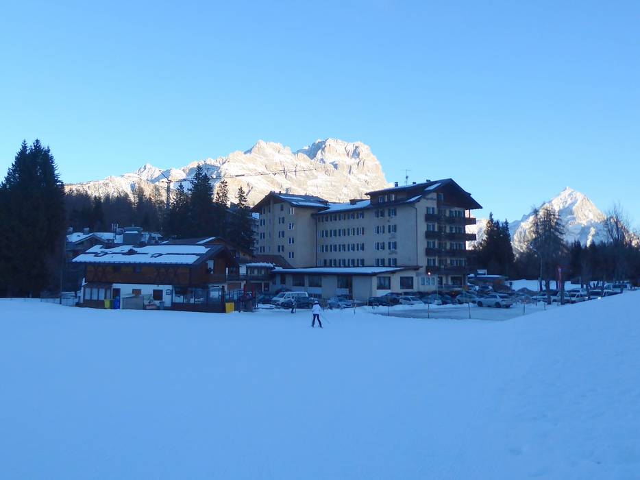 Die Unterkünfte in Cortina d'Ampezzo liegen zumeist nicht direkt an den Pisten. Man kann zu den Pisten laufen oder mit dem Skibus fahren. Es gibt wenige Unterkünfte, die sich direkt an den Pisten befinden. Einige Hütten im Skigebiet bieten auch Übernachtungsmöglichkeiten an.