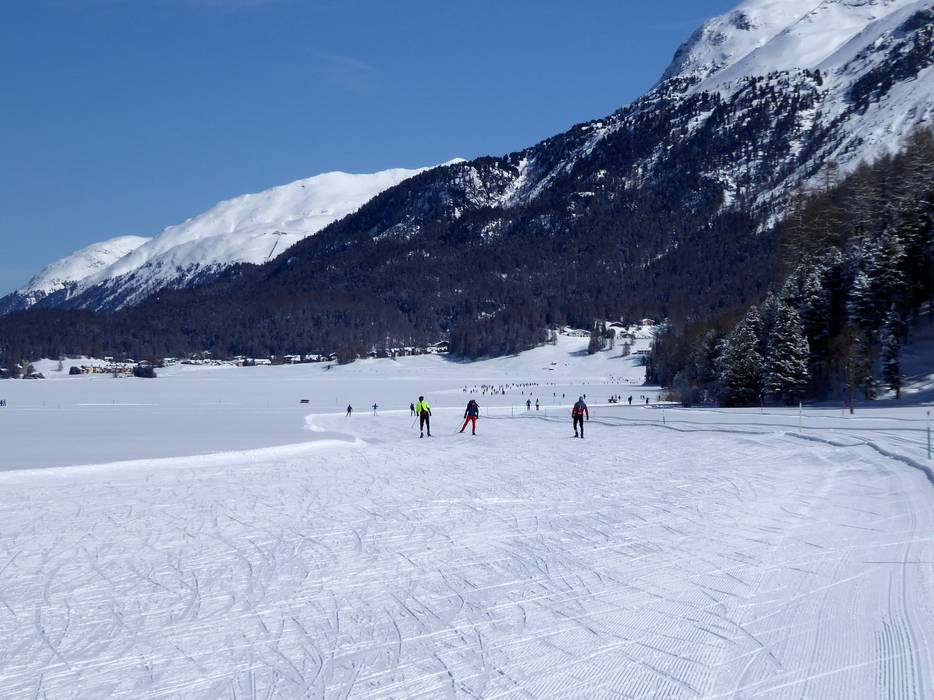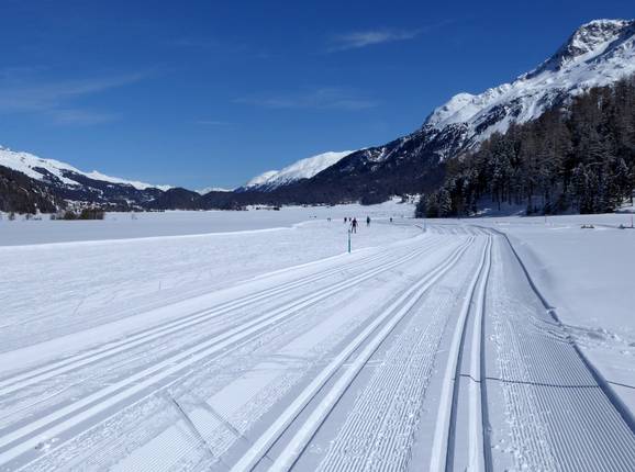 Schneesichere Loipen führen durch das gesamte Oberengadin. Langläufer kommen hier voll auf Ihre Kosten. Die Loipen führen in unmittelbarer Nähe an den Talstationen Corvatsch und Furtschellas vorbei. Traumhaft sind die Loipen auf dem zugefrorenen Silvaplanersee.