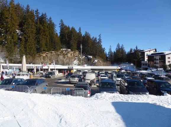 Parkplätze: meist ausreichend vorhanden, Parkhaus, asphaltierter Platz, kostenpflichtig