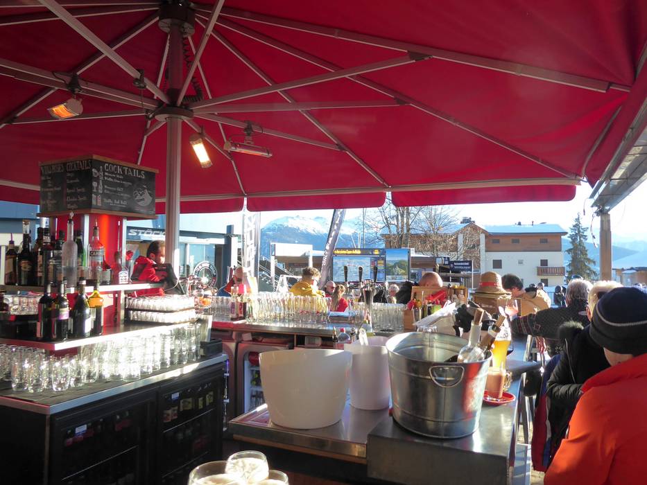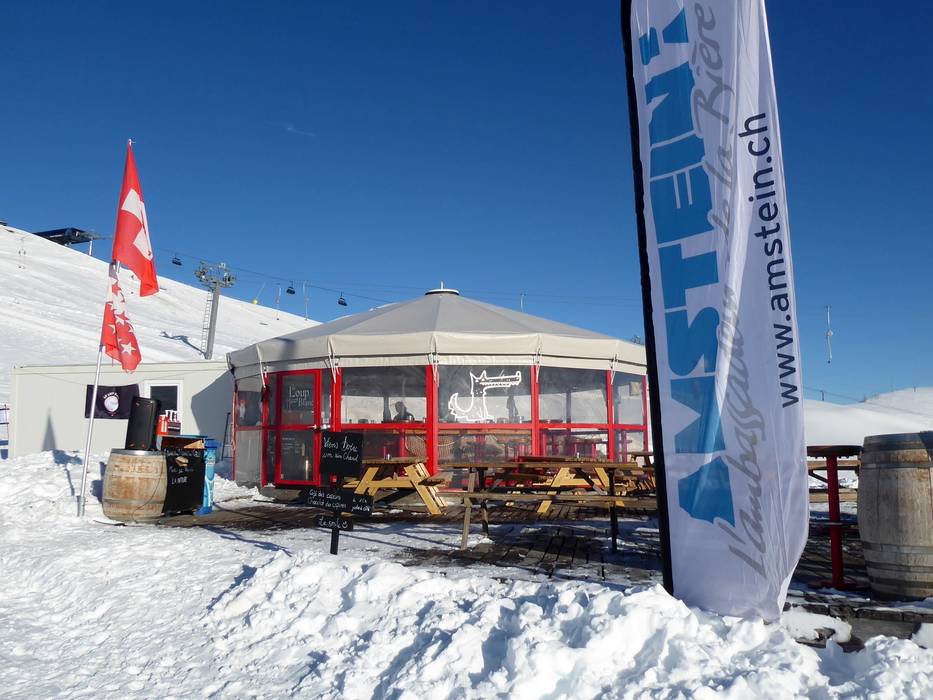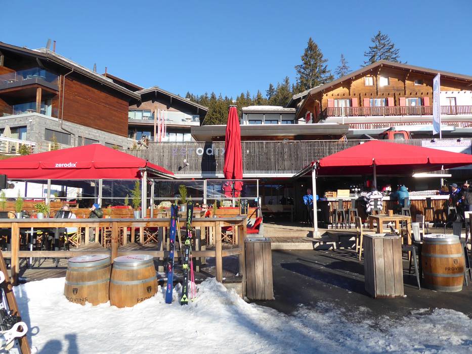 Vor der Talabfahrt nach Crans-Montana kann man im Le 2006 den Skitag bei Musik und herrlichem Panorama ausklingen lassen.