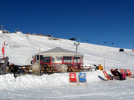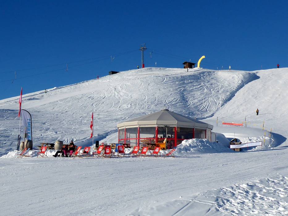 An den Wochenenden kann man den Skitag in der La Yourte ausklingen lassen. Bei Sonnenschein warten Liegestühle.