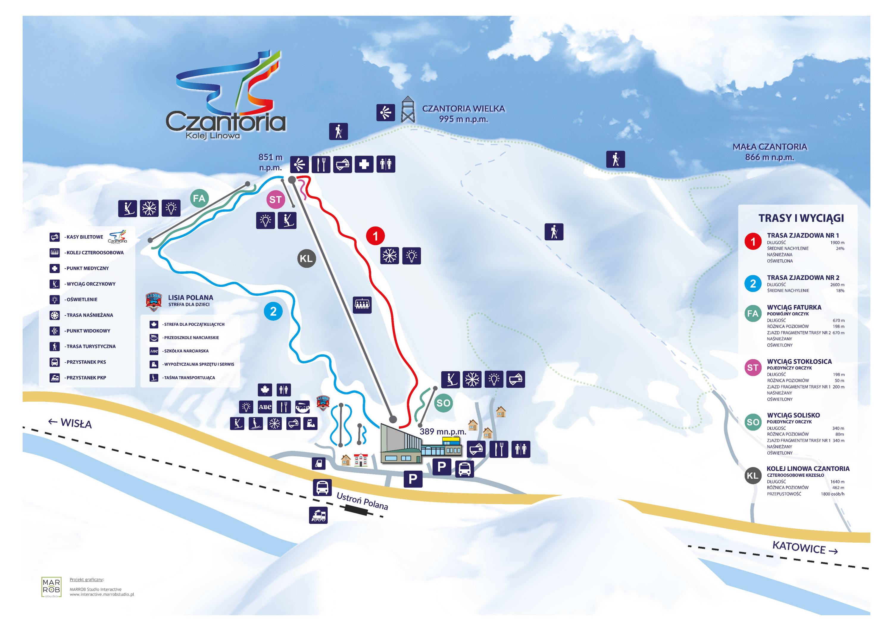 Pistenplan Czantoria – Ustroń Saison 2024/2025