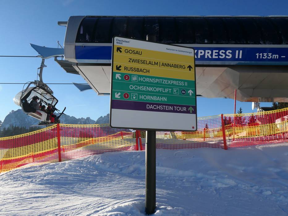 Orientierung (Pistenplan, Informationstafeln, Ausschilderung) und Sicherheit im Skigebiet Dachstein West – Gosau/Russbach/Annaberg