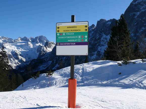 An den Talstationen findet man aktuelle Informationen zum Betriebsstatus. Die meisten Pisten sind gut ausgeschildert. Man findet sich im Skigebiet meist sehr gut zurecht. Die Skirgenussrunde "Dachstein Tour" ist ausgeschildert.