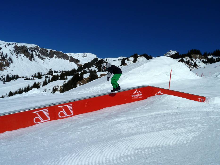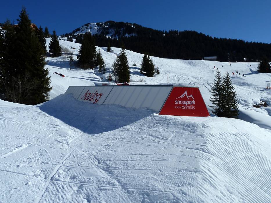 Der Burton Snowpark Damüls zählt mit zu den besten Snowparks im Bregenzerwald. Er befindet sich an der Doppelsesselbahn Walisgaden und ist somit auch immer schnell wieder zu erreichen.