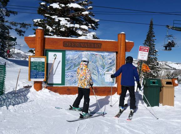 Orientierung (Pistenplan, Informationstafeln, Ausschilderung) und Sicherheit im Skigebiet Deer Valley