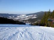 B. Marta - 4er Hochgeschwindigkeits-Sesselbahn… C. Kotva-Yourpark - Schlepplift mit… E. Kiddo Park - Förderband F. Výukové hřiště - Förderband Sehr gute Pistenpräparierung im Skigebiet… Blick auf den Ort Deštné v Orlických horách Unterkünfte an der Talstation Tipp für die Kleinen - Kids Park Tipp für die Kleinen - Skischule Bild Deštné
