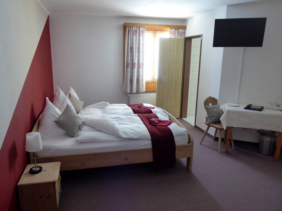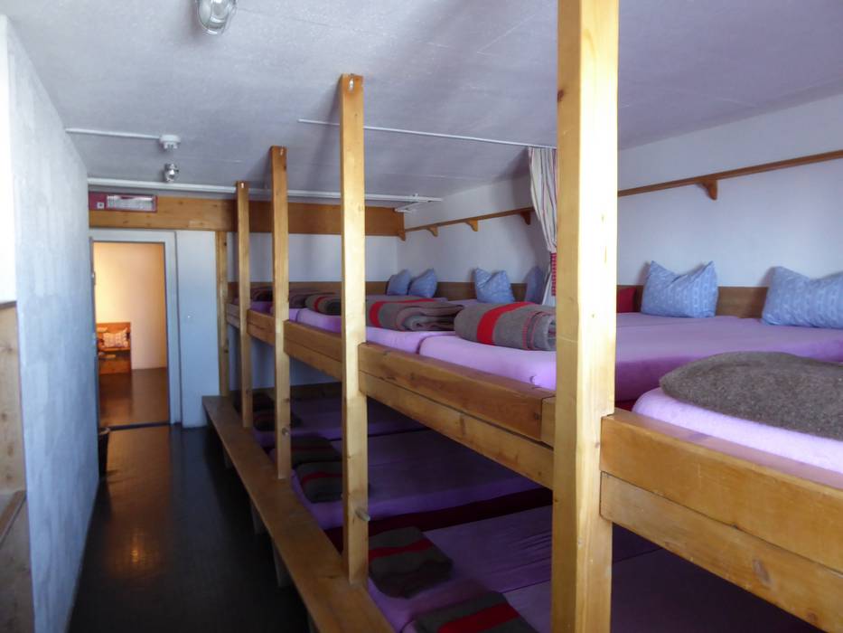 Abends, wenn die Skifahrer die Pisten verlassen haben, kehrt hier oben Ruhe ein. Eine einzigartige Bergkulisse schafft eine einmalige Abendstimmung. Komfortable Doppel-, Zweier- oder Viererzimmer sowie Gruppenunterkünfte werden angeboten. Highlight ist der Jacuzzi im Freien mit Blick auf das Berninamassiv und den Piz Palü.