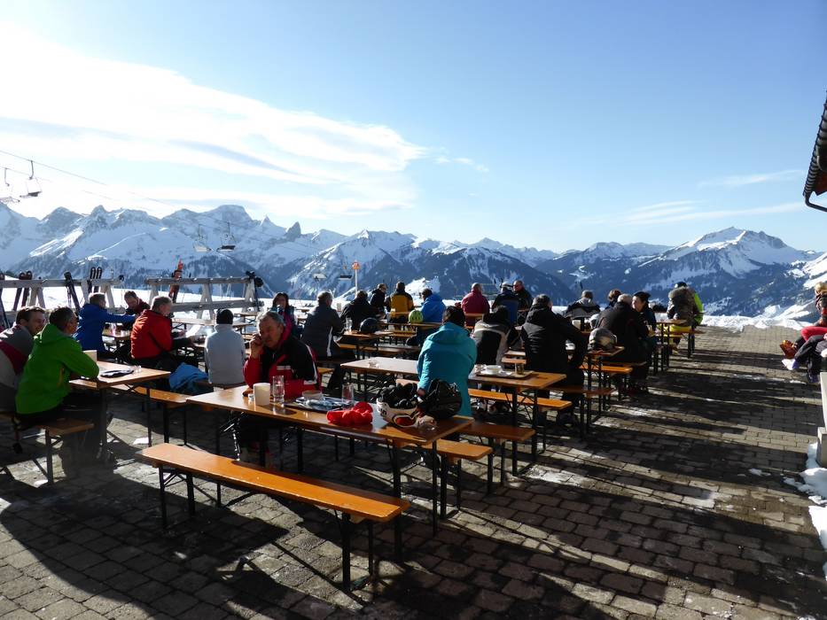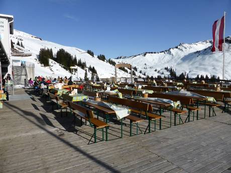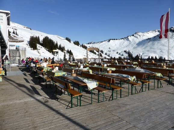 Im Skigebiet Schoppernau/Diedamskopf gibt es drei Einkehrmöglichkeiten am Berg sowie zwei im Tal. Die Bergrestaurants sind gepflegt und bieten reichlich Platz. Von der Terrasse des SB-Panoramarestaurants hat man einen herrlichen Gipfel-Blick.