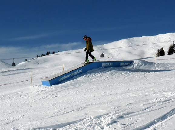 Der Funpark am Diedamskopf bietet Obstacles für Alle, vom Freestyle-Anfänger bis zum angehenden ProRider. Neben dem Hauptpark gibt es zusätzlich im oberen Bereich des Skigebiets eine Line mit Obstacles wie Jibkugel und Butterbox.