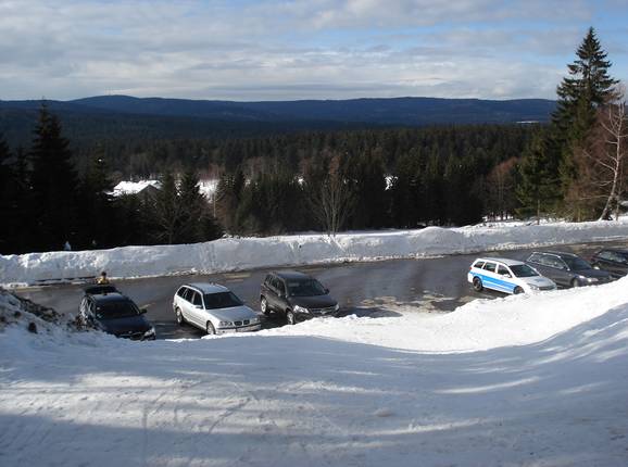 Die nächste Autobahn ist gute 50 km entfernt. Die Parkplätze sind geteert und direkt am Lift.