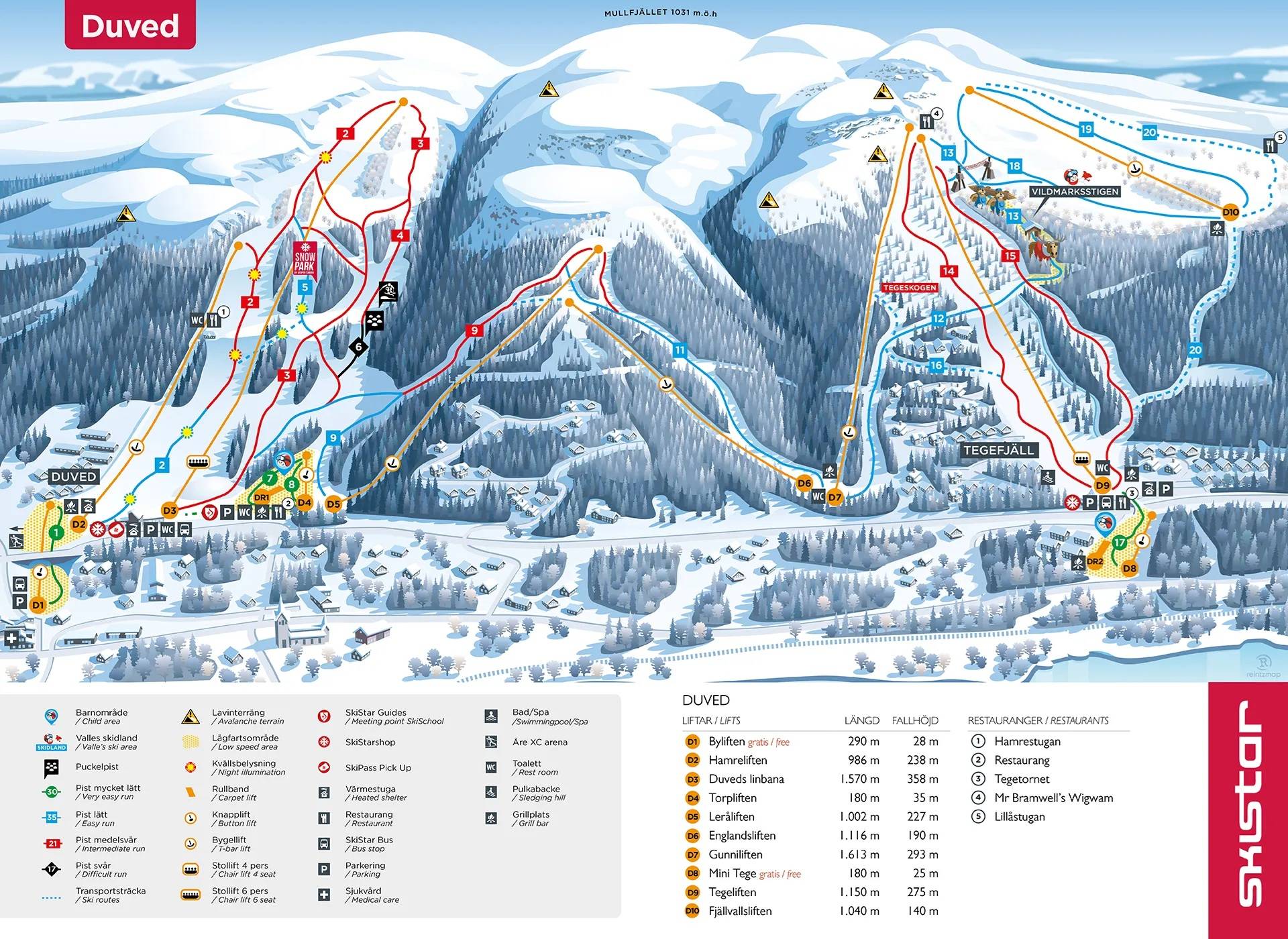 Pistenplan Duved/Tegefjäll Saison 2025/2026
