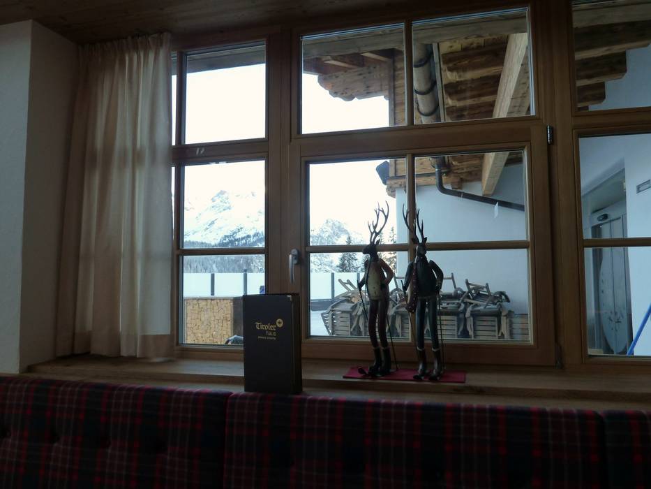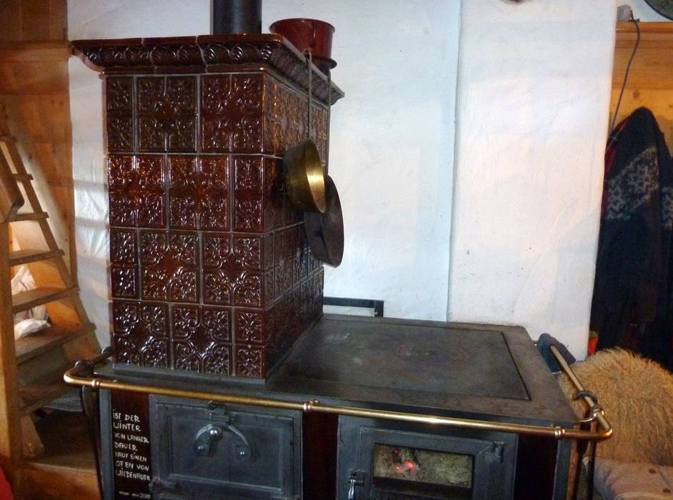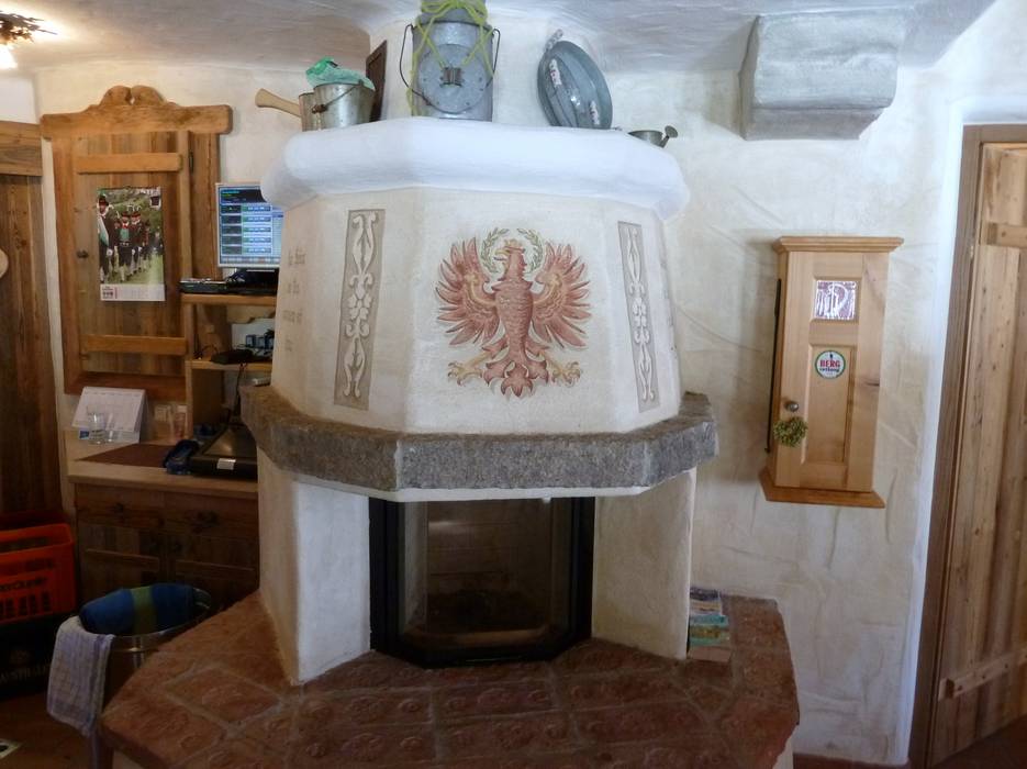 Gemütliche Hütte mit Kachelofen, offenem Kamin, Bar und gemütlichen Sitzecken. Hier werden hausgemachte Tiroler Speisen serviert.