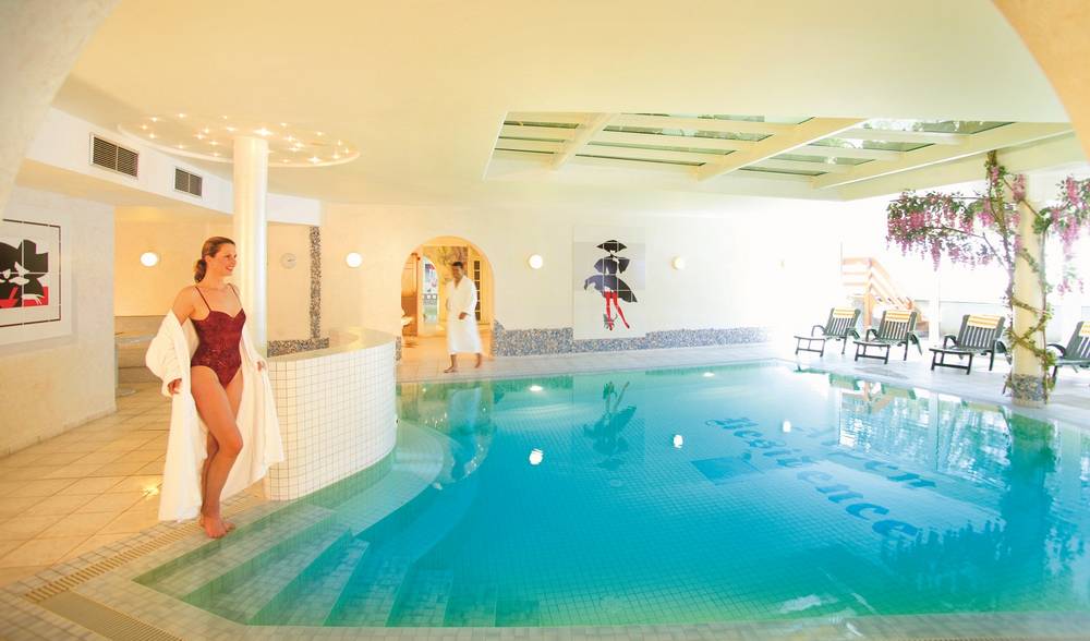 Der schöne Wellnessbereich bietet einen Indoor-Pool, verschiedene Saunen, Infrarotkabine, Dampfbäder sowie Massage- und Kosmetikanwendungen.
