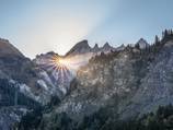 Am Mittwoch, 25. Februar 2026 um 09.27 Uhr scheint die Sonne durch das Martinsloch auf die Terrasse des Bergrestaurants Ämpächli.