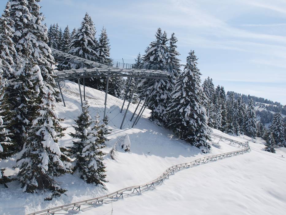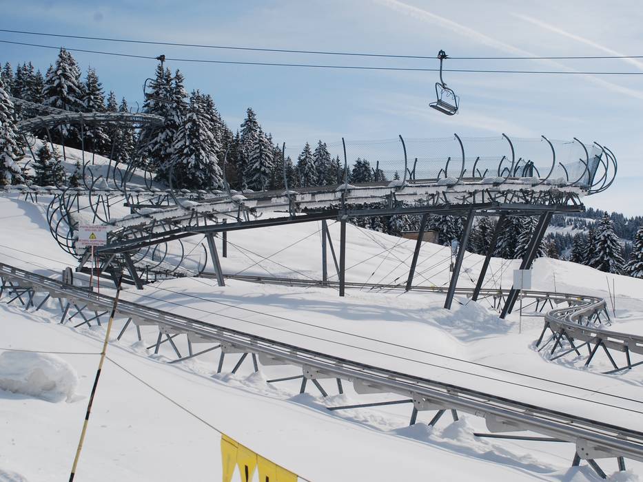 Der 750 Meter lange Alpine Coaster am Ortstrand von Les Saisies ist auch im Winter in Betrieb und bei Kindern sehr beliebt. Sie können alleine oder mit einem Erwachsenen in den doppelsitzigen Schlitten mit bis zu 40 km/h durch mehrere Kurven bergab sausen.