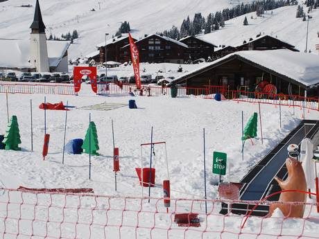 Funpisten mit spielerischen und pädagogischen Elementen für sechs- bis zwölfjährige, zu finden in Crest Voland (Piste Tovats) und Praz sur Arly (Schlepplifte Baby 1 und 2)