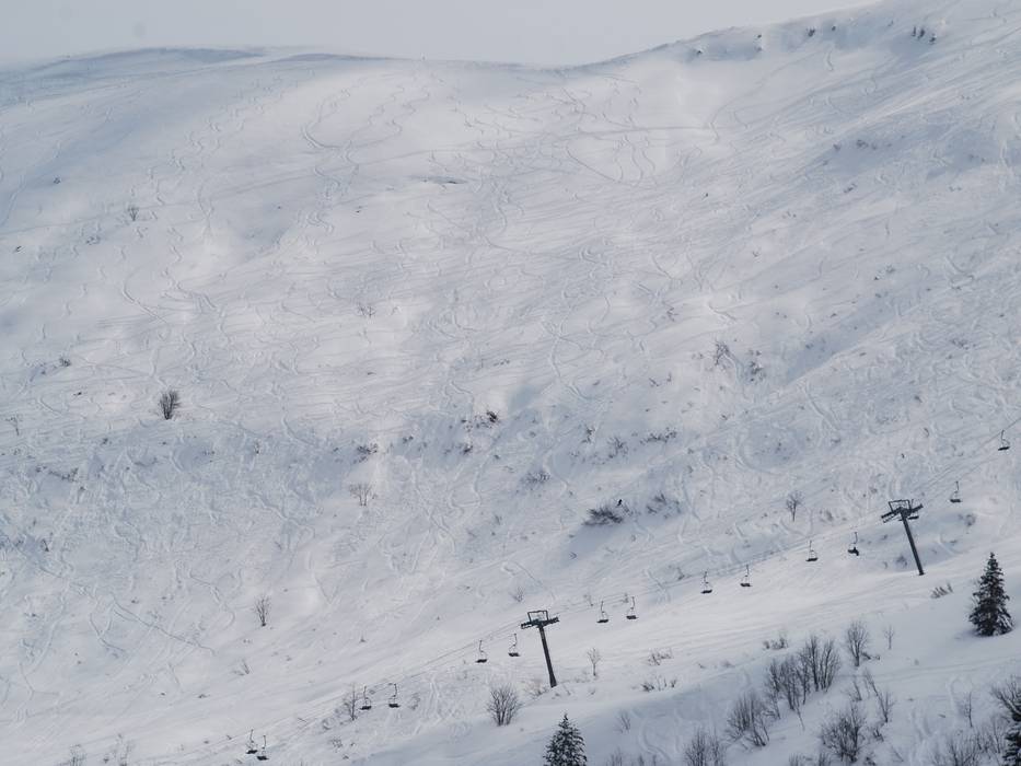 Am Nordhang des Mont Rond führt diese nicht immer gewalzte schwarze Piste durch den Wald talwärts. Dank kuppelbarem Sechser ist man schnell wieder oben. - Sapinière · Länge 0,7 km · Höhenunterschied 200 m