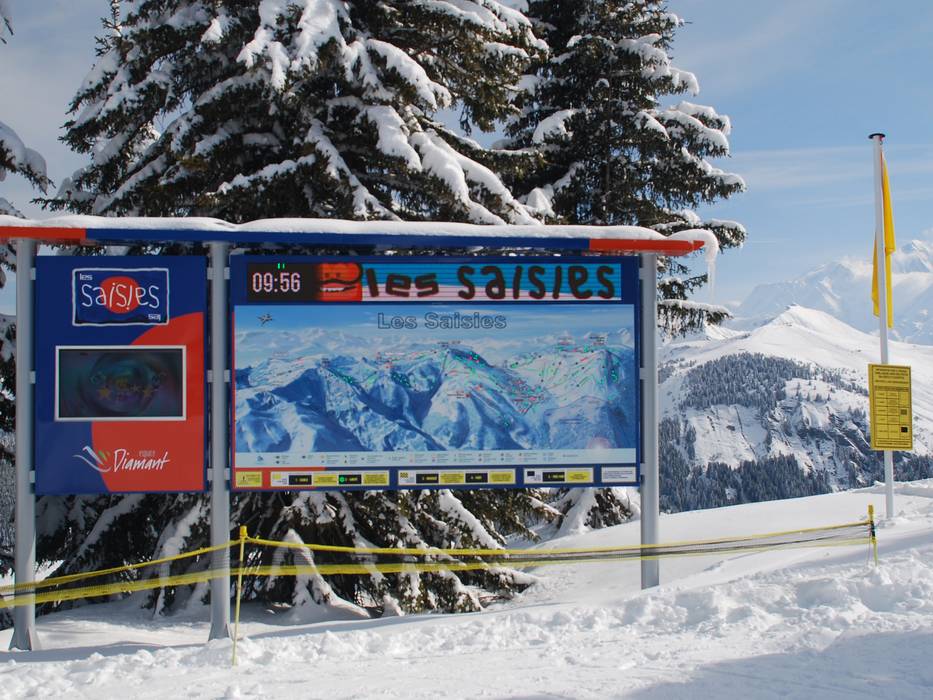 Orientierung (Pistenplan, Informationstafeln, Ausschilderung) und Sicherheit im Skigebiet Espace Diamant – Les Saisies/​Notre-Dame-de-Bellecombe/​Praz sur Arly/​Flumet/​Crest-Voland