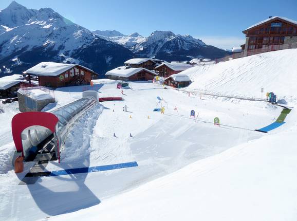In La Rosière warten zwei Piou-Piou Kinderländer. Eines befindet sich an der Talstation Eucherts und eines an der Talstation Roches Noires. In beiden Kinderländern warten Förderbänder und lustige Figuren.