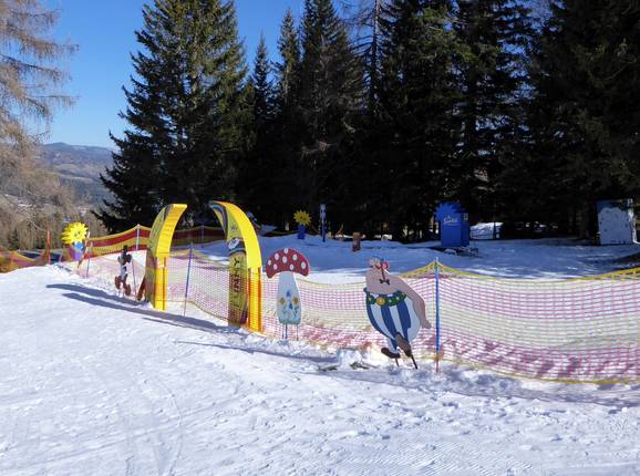Am Zauberteppich der Skischule Funny lernen die Kinder die ersten Kurven im Schnee. Zahlreiche Märchenfiguren sorgen für Unterhaltung. Bei den Übungsliften können sich die Kinder ideal steigern. Die Skischule bietet auch Mittagsbetreuung an.