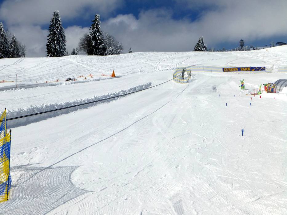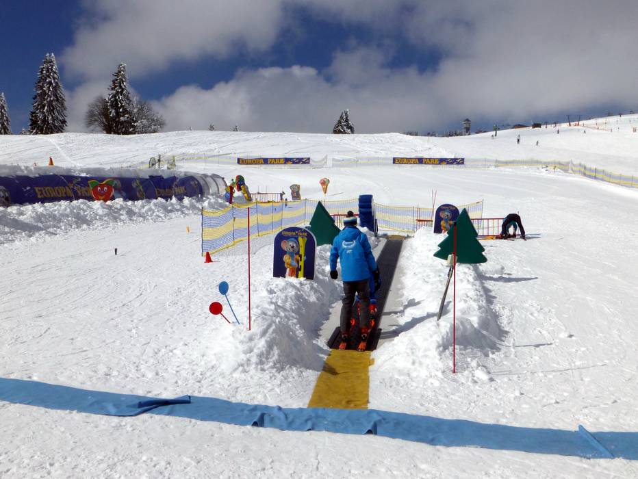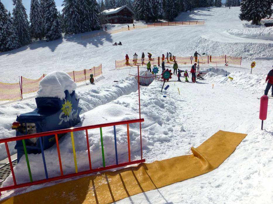 Das Kinderland von Schneesport Thoma in Grafenmatt bietet neben zwei Förderbändern auch ein Skikarussell. Ab und zu schaut auch Hopsi bei den Kindern vorbei. Im Kinderland tummeln sich in der Regel 4-bis 10-Jährige.