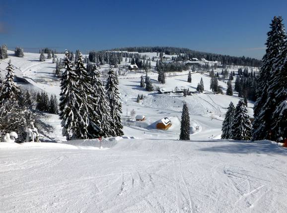 Das größte Skigebiet des Schwarzwalds erstreckt sich über zwei gegenüberliegende Hänge am Seebuck und am Grafenmatt. Verbunden sind die beiden Bereiche mit einer Skibrücke und der Zeigerbahn. Besucher erkunden bequem ein weitläufiges Areal zwischen den höchsten Gipfeln im Hochschwarzwald.